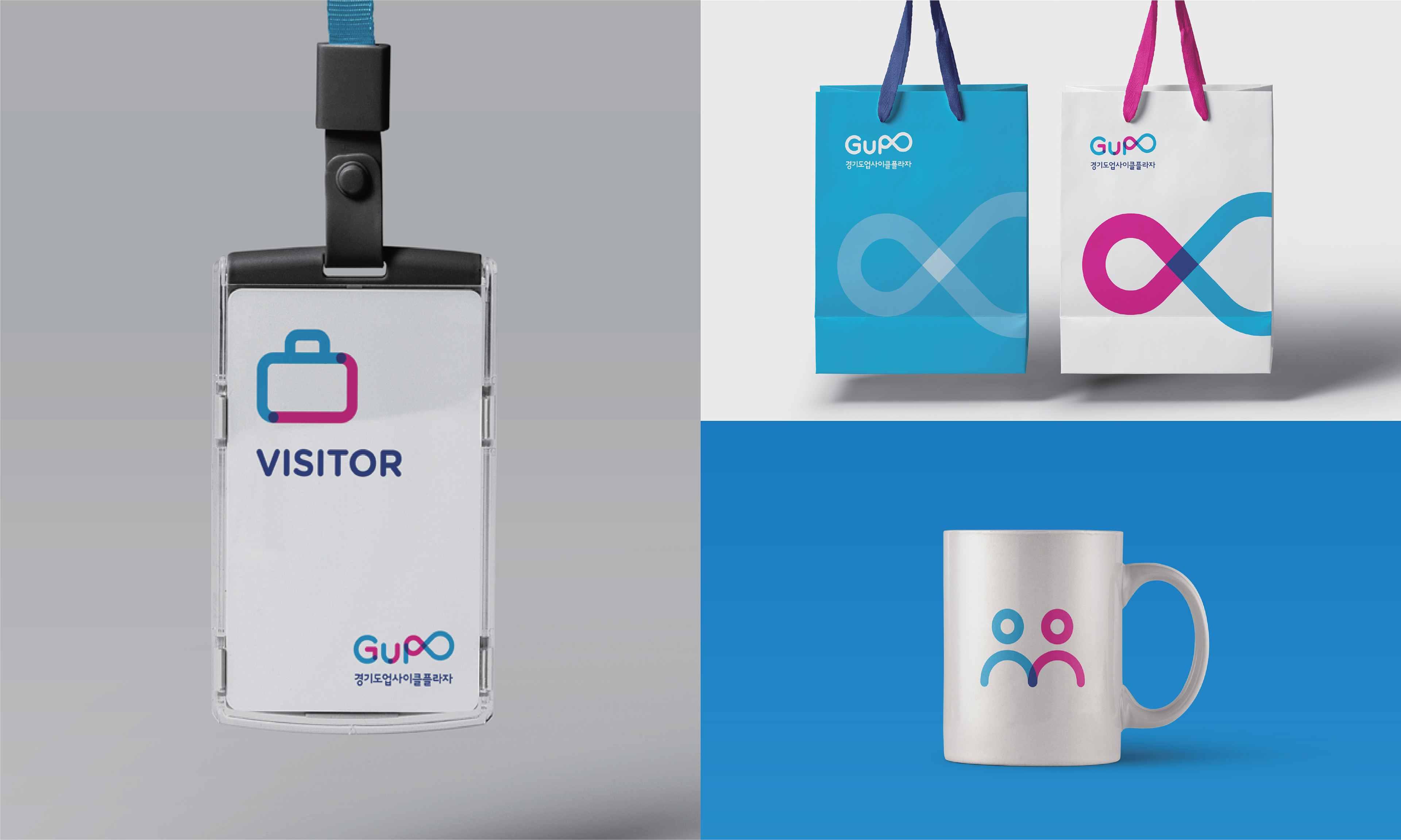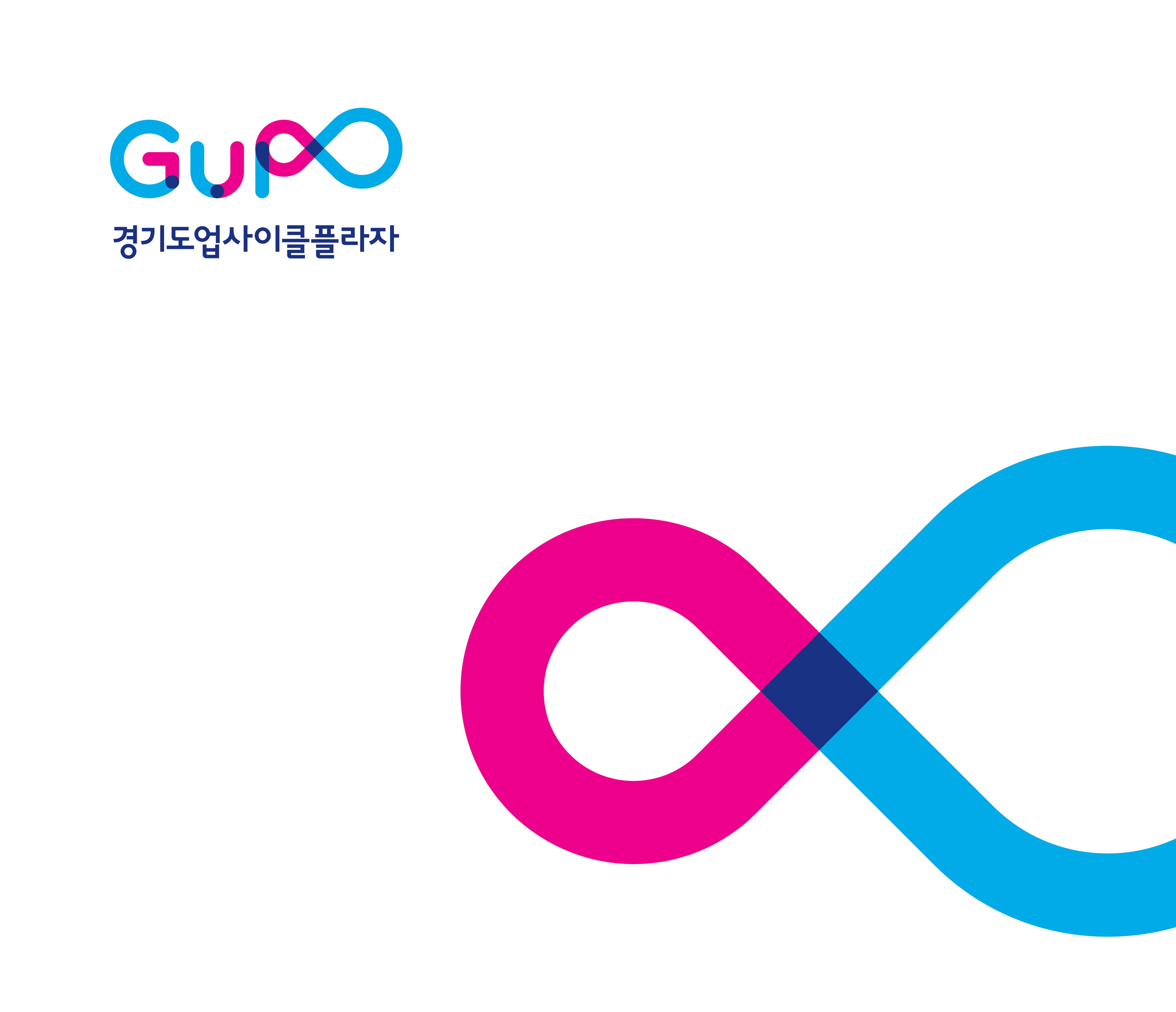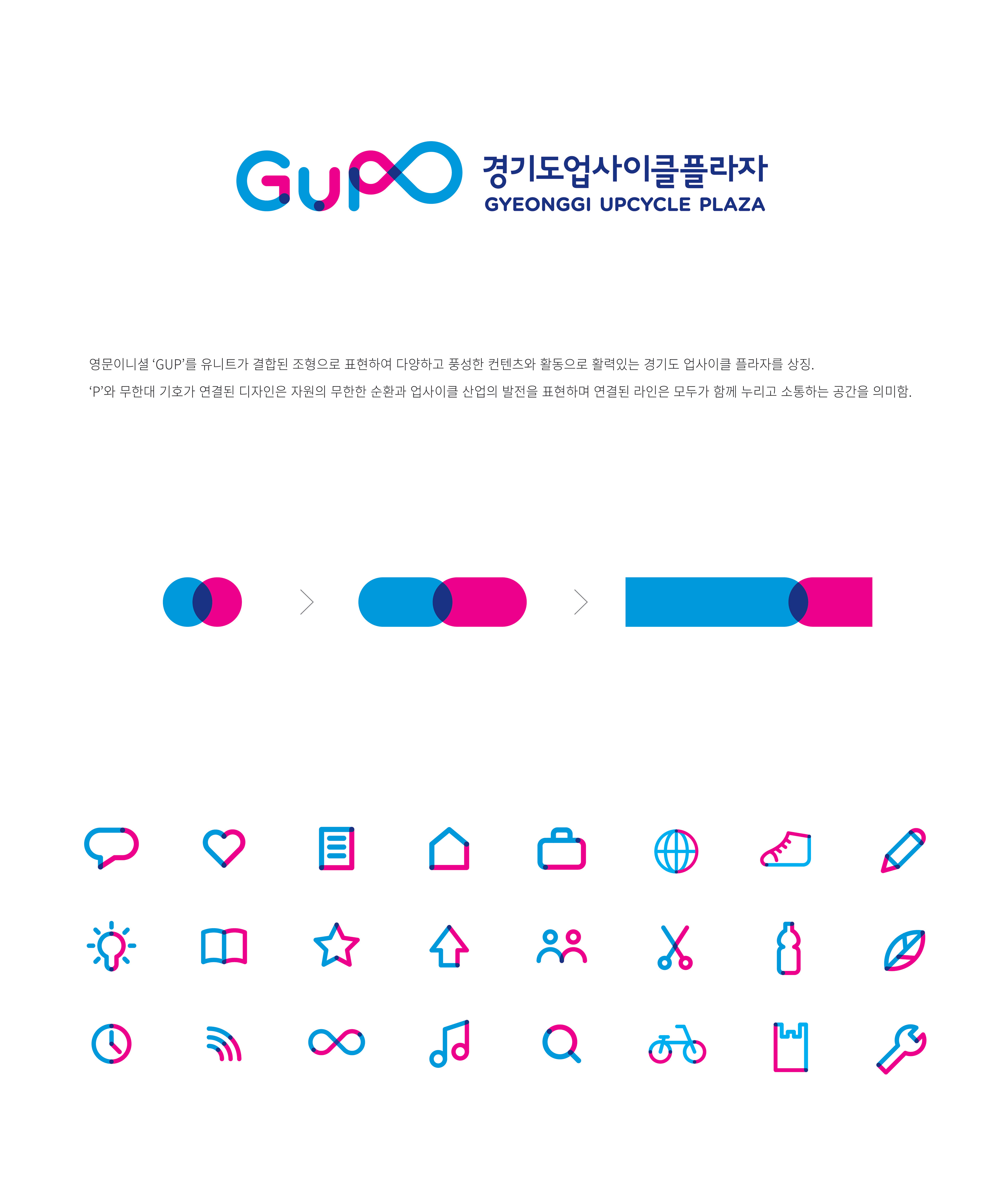 이니셜 GUP 유니트가 결합된 조형으로 다양하고 풍성한 컨텐츠와 활동으로 활력있는 경기도 업사이클플라자를 상징하고