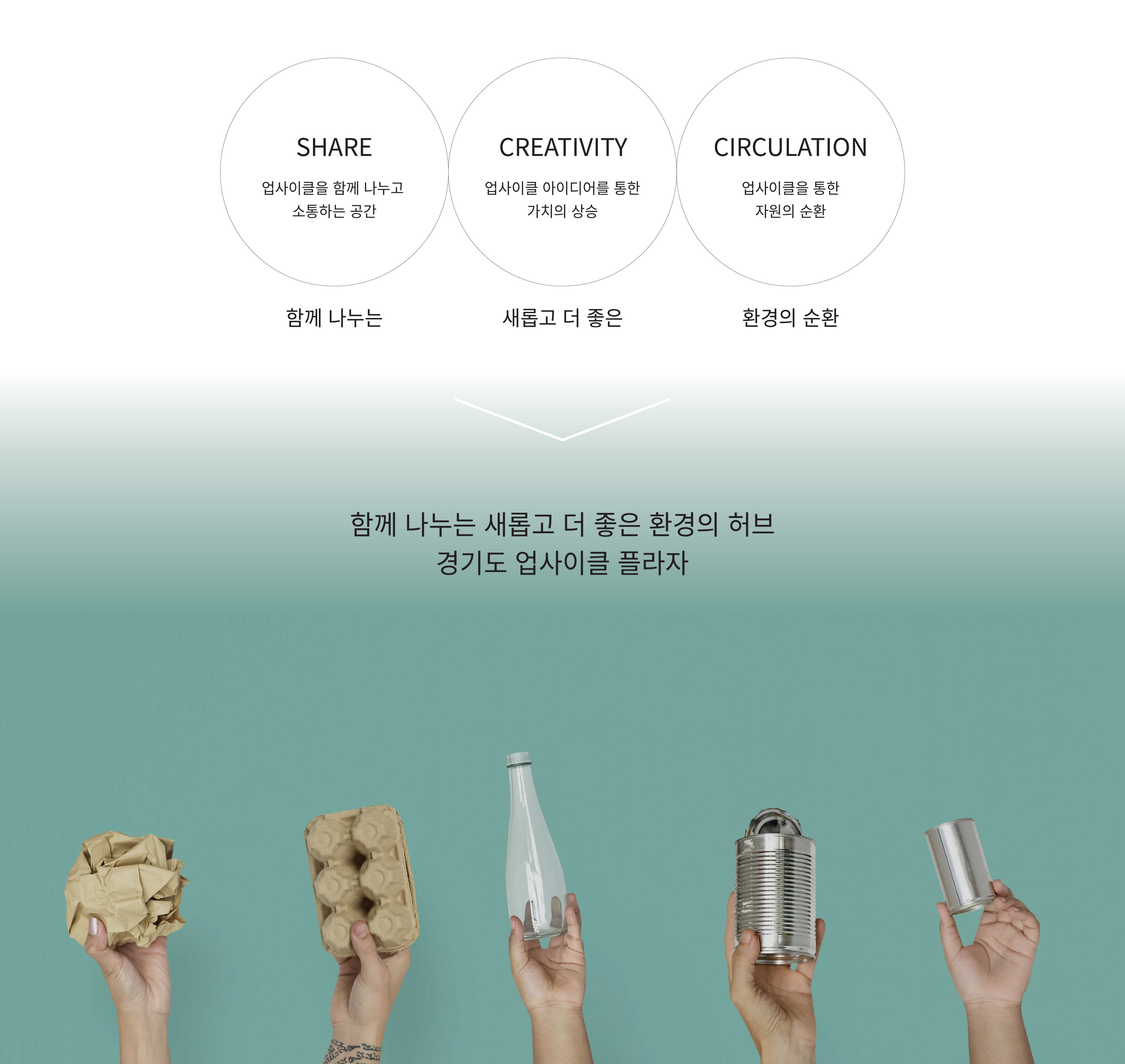 경기도 업사이클플라자는 업사이클, 재사용, 재활용 관련 산업을 지원하고