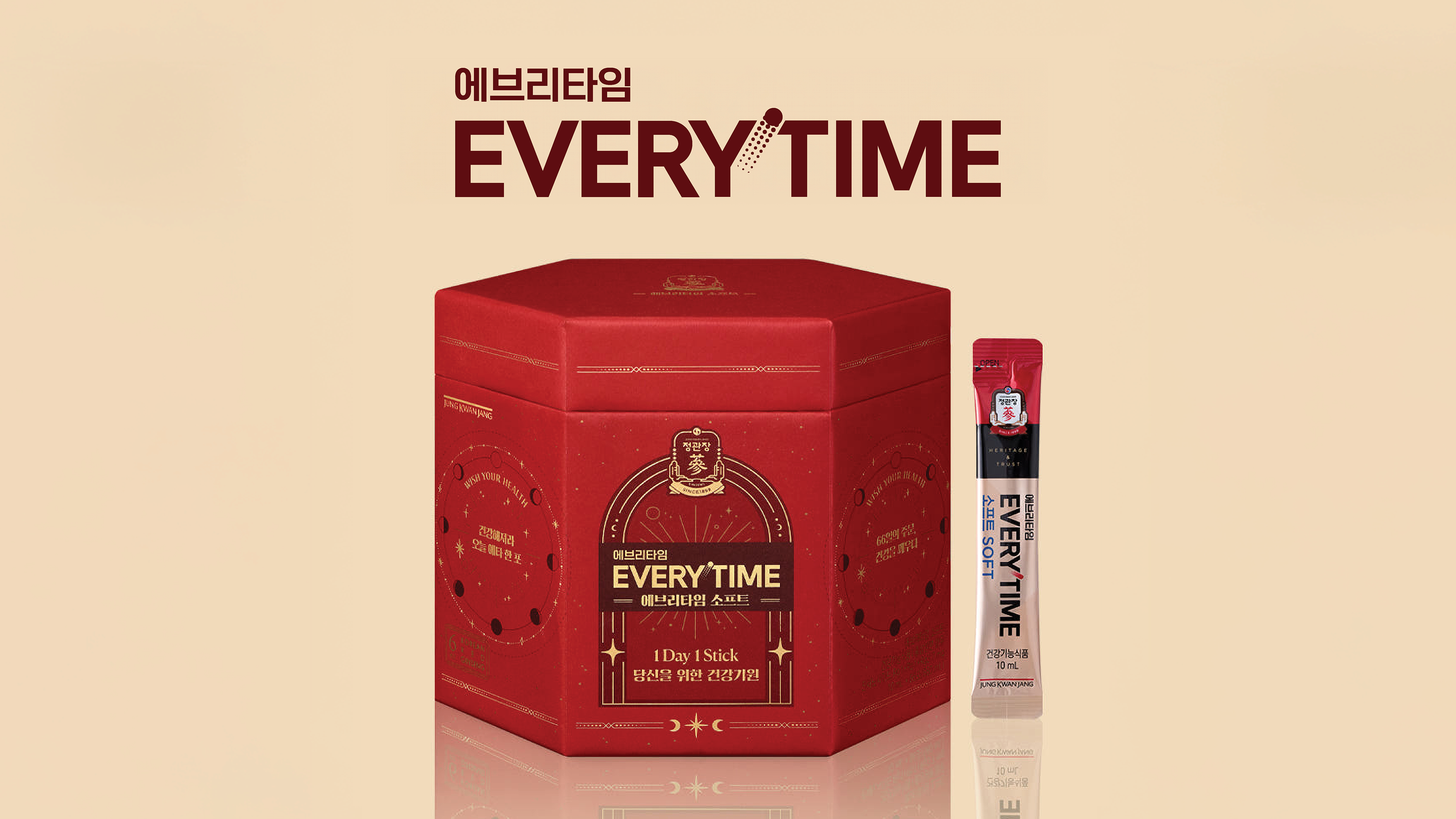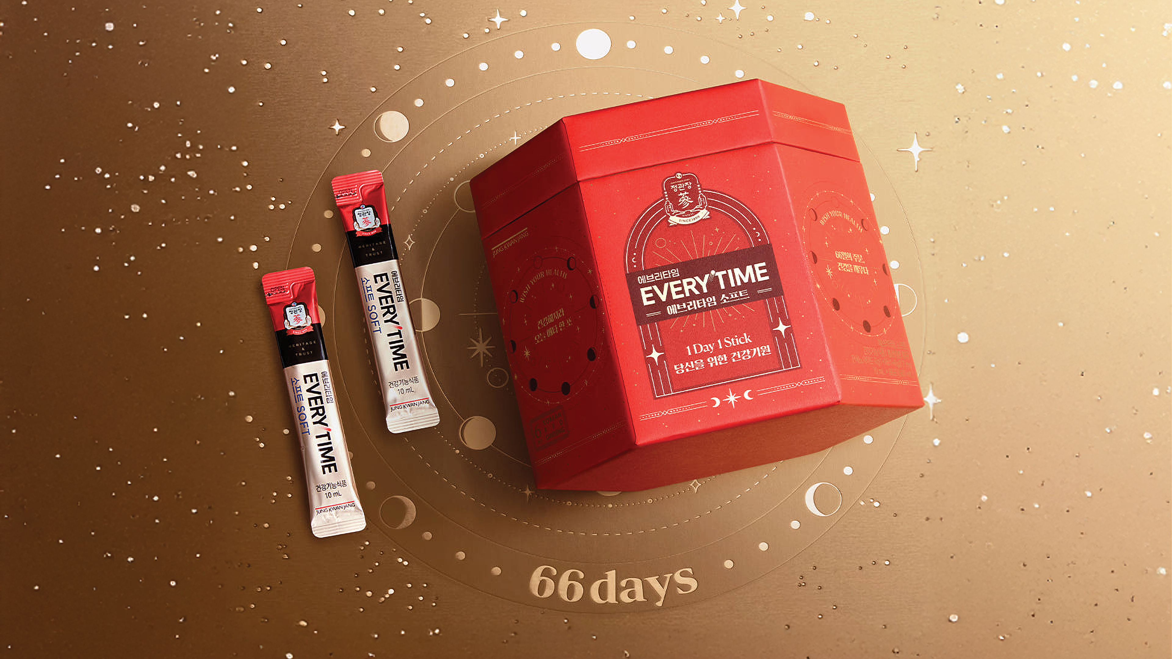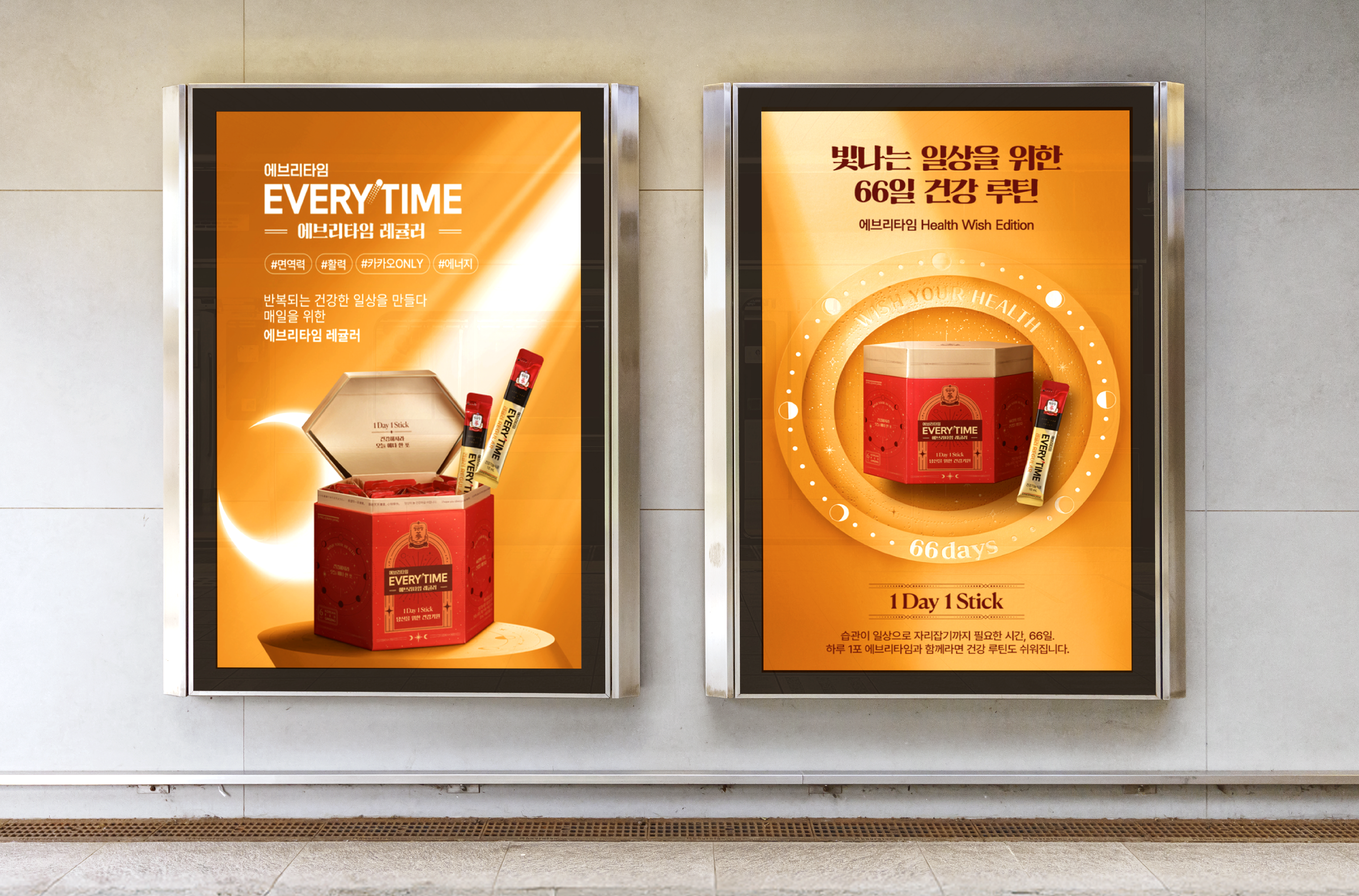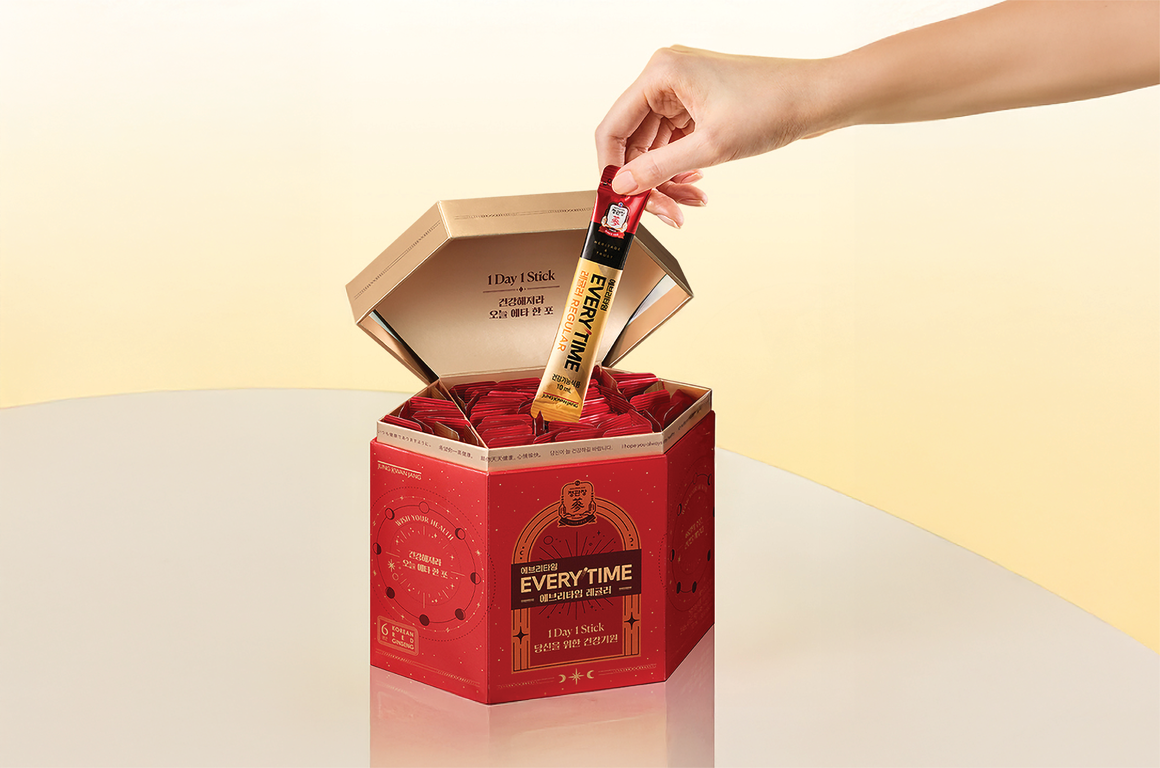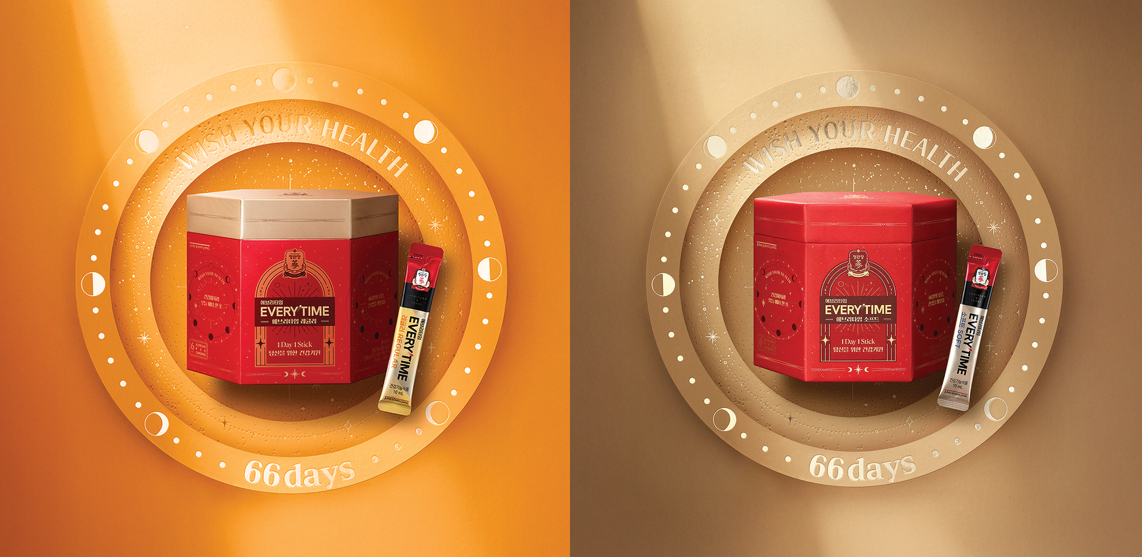 정관장 에브리타임 Health Wish 에디션의 패키지 디자인으로,