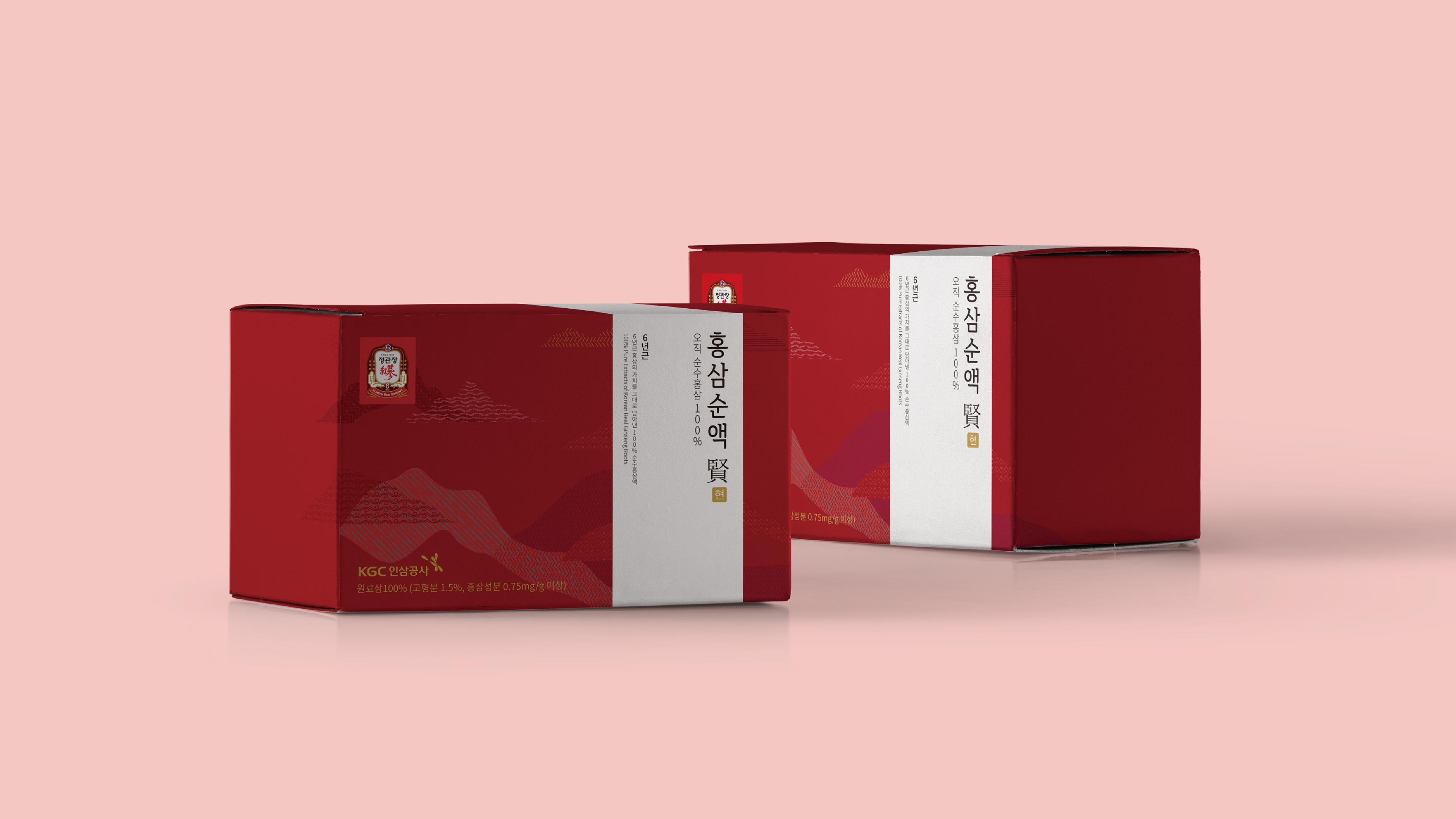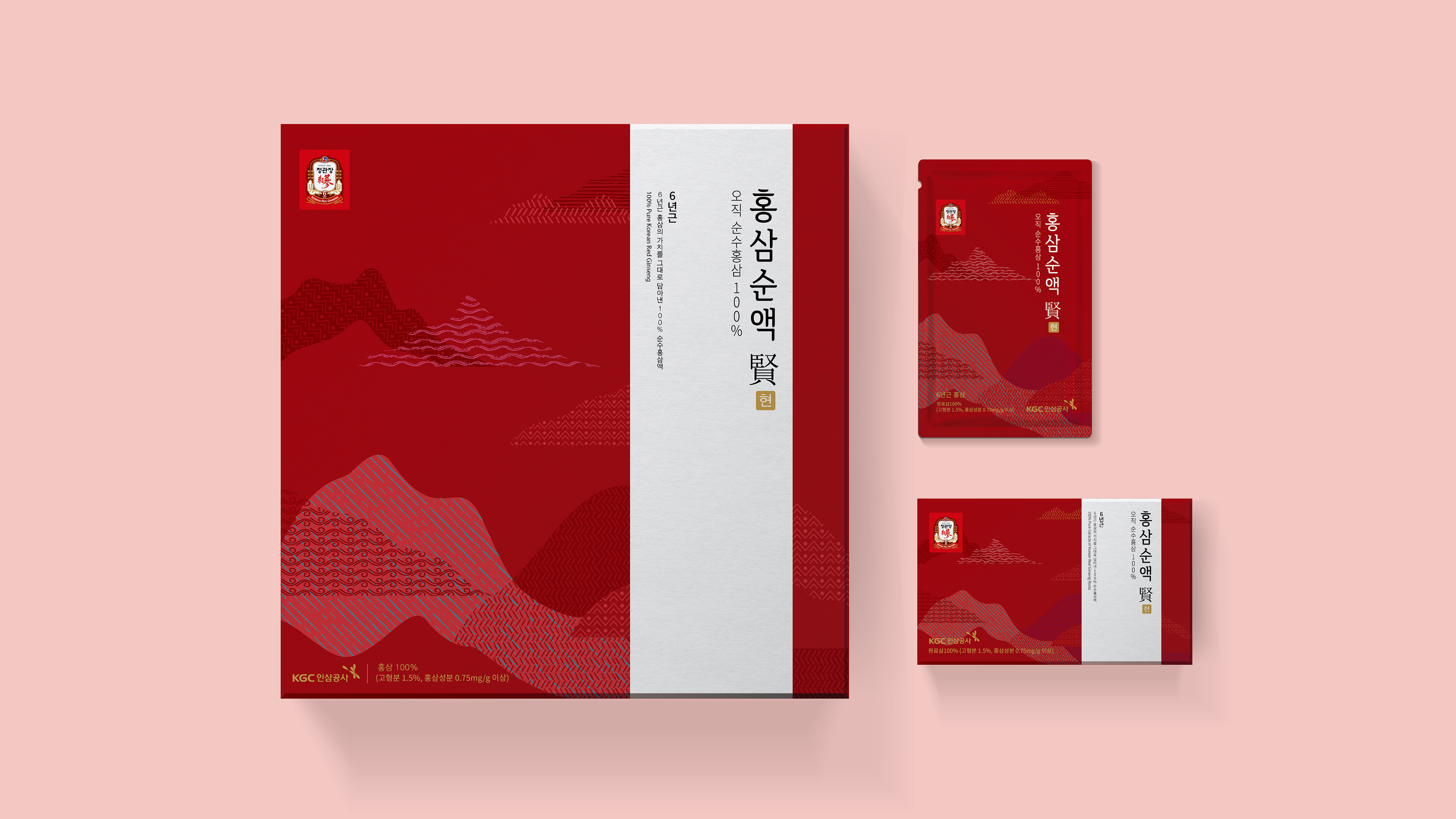 정관장의 신뢰감 있는 브랜드 이미지와 연결하면서도, 기존 홍삼 달임액 제품들과는 다른 세련되고 절제된 인상을 구축