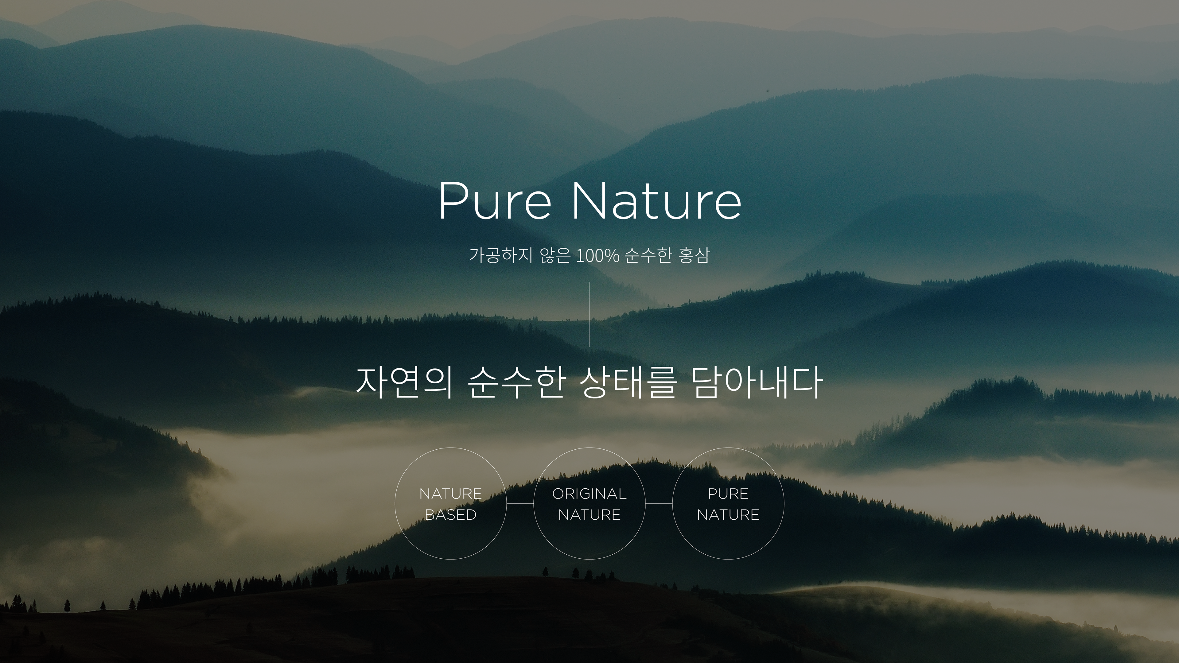 자연의 순수한 상태와 정직한 제조 철학을 담아내어, ‘자연 그대로의 홍삼’이라는 메시지를 가장 순수한 형태로 표현한 디자인
