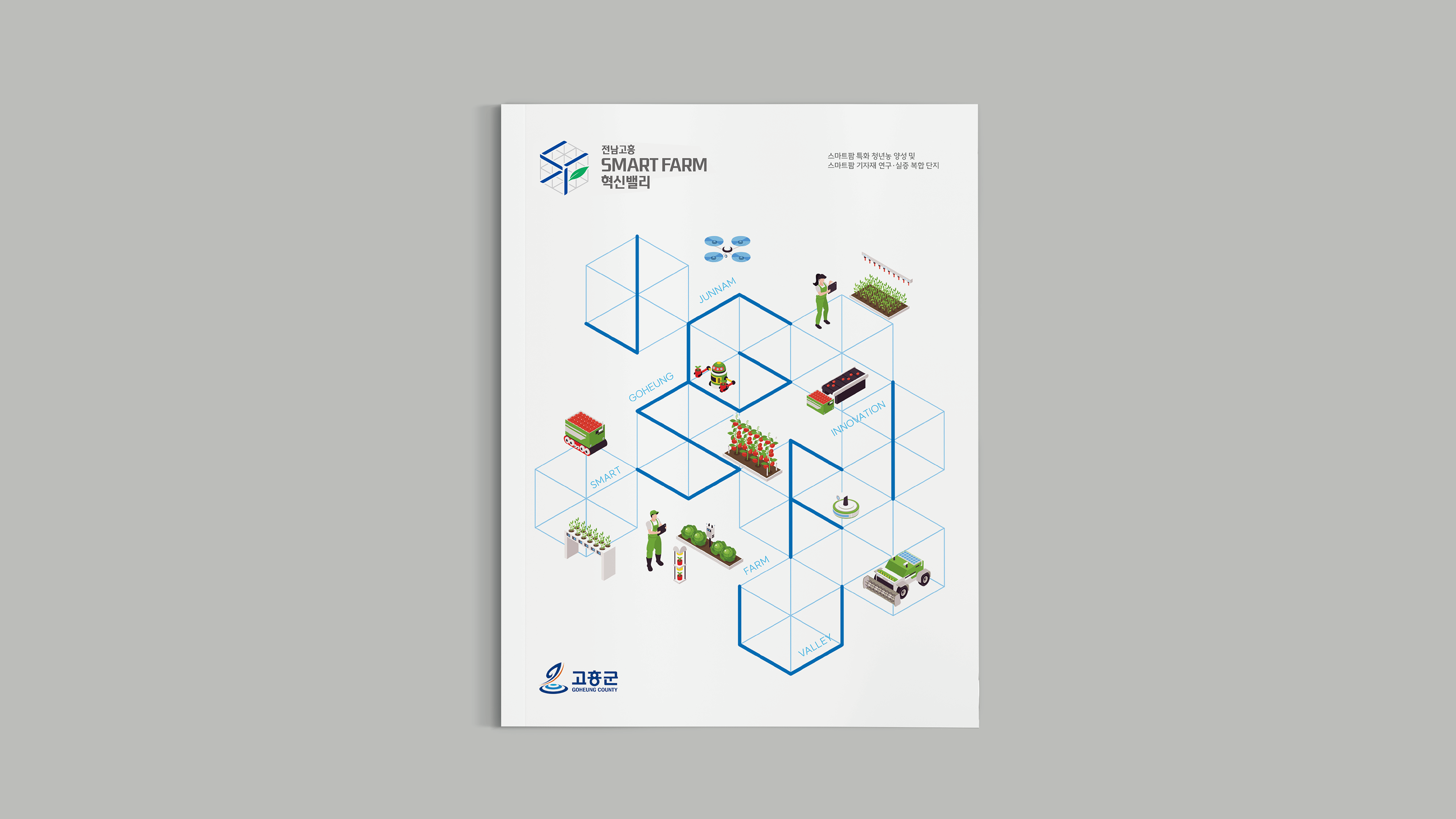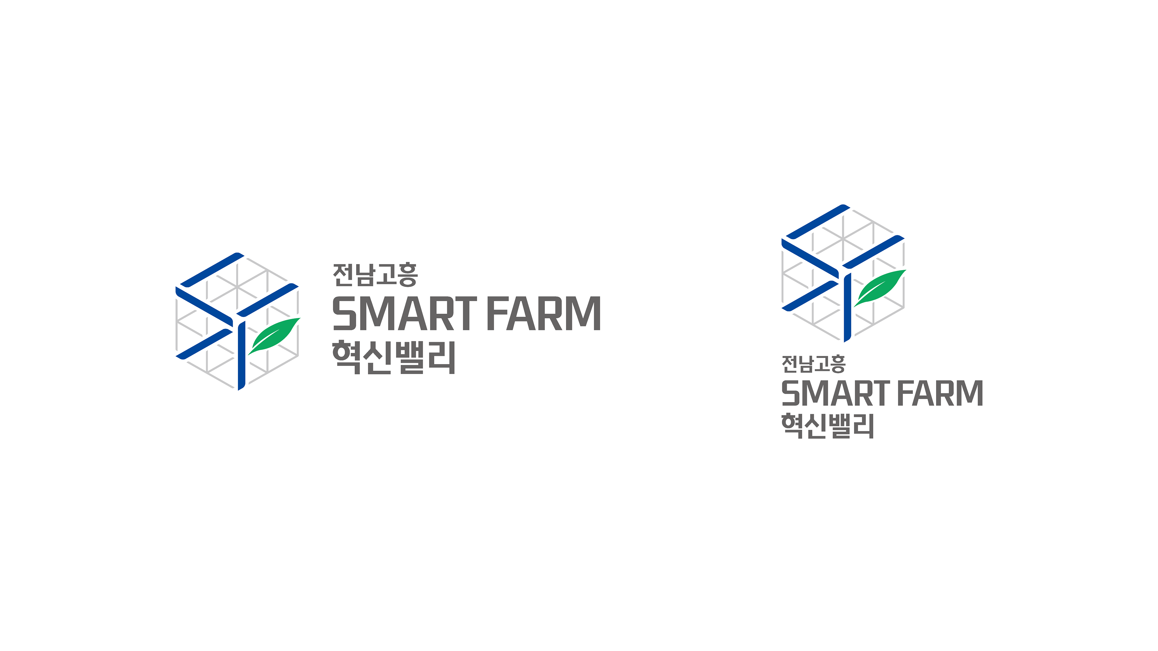 정육면체안에 S,F 이니셜을 담아 유무형의 공간에서 서로 연결되고 확장되는 스마트팜 밸리를 표현.