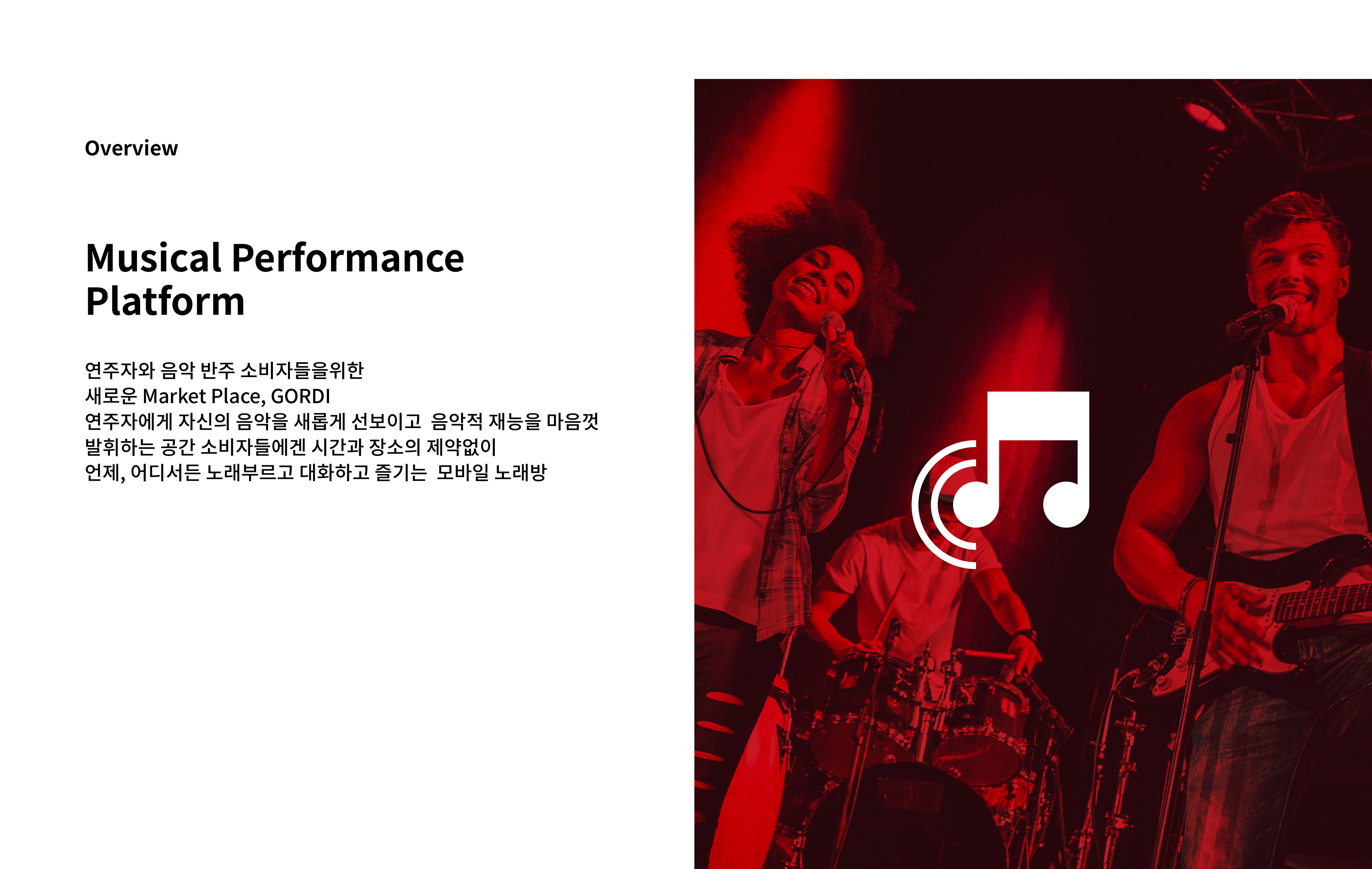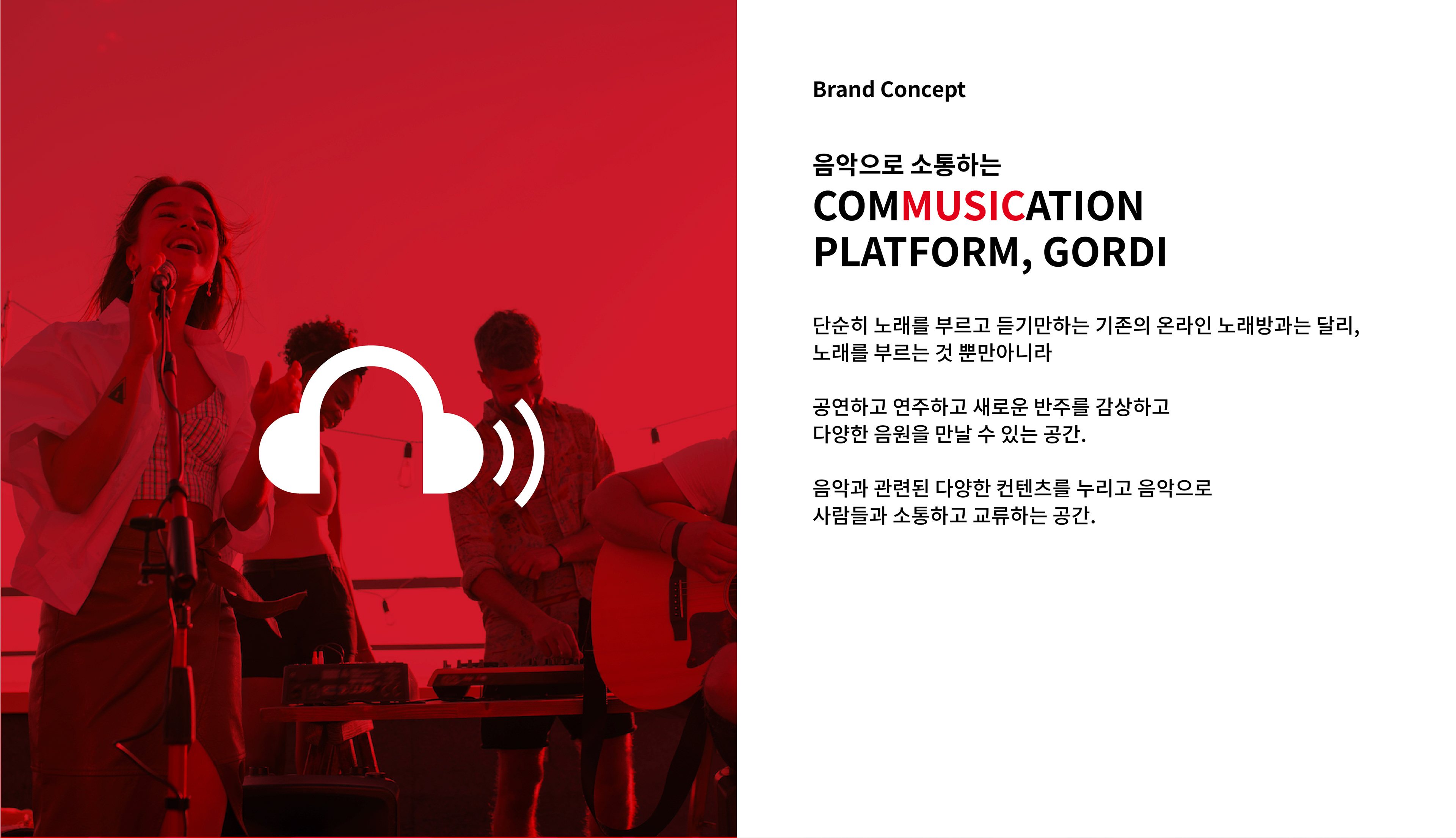 기존의 온라인 노래방, 각종 음원 사이트들과는 전혀 다른 새로운 형태의 COMMUSICATION PLATFORM, GORDI